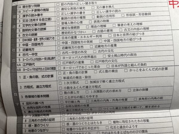 冬休み前にこんな感じでテスト範囲をもらいましたね。